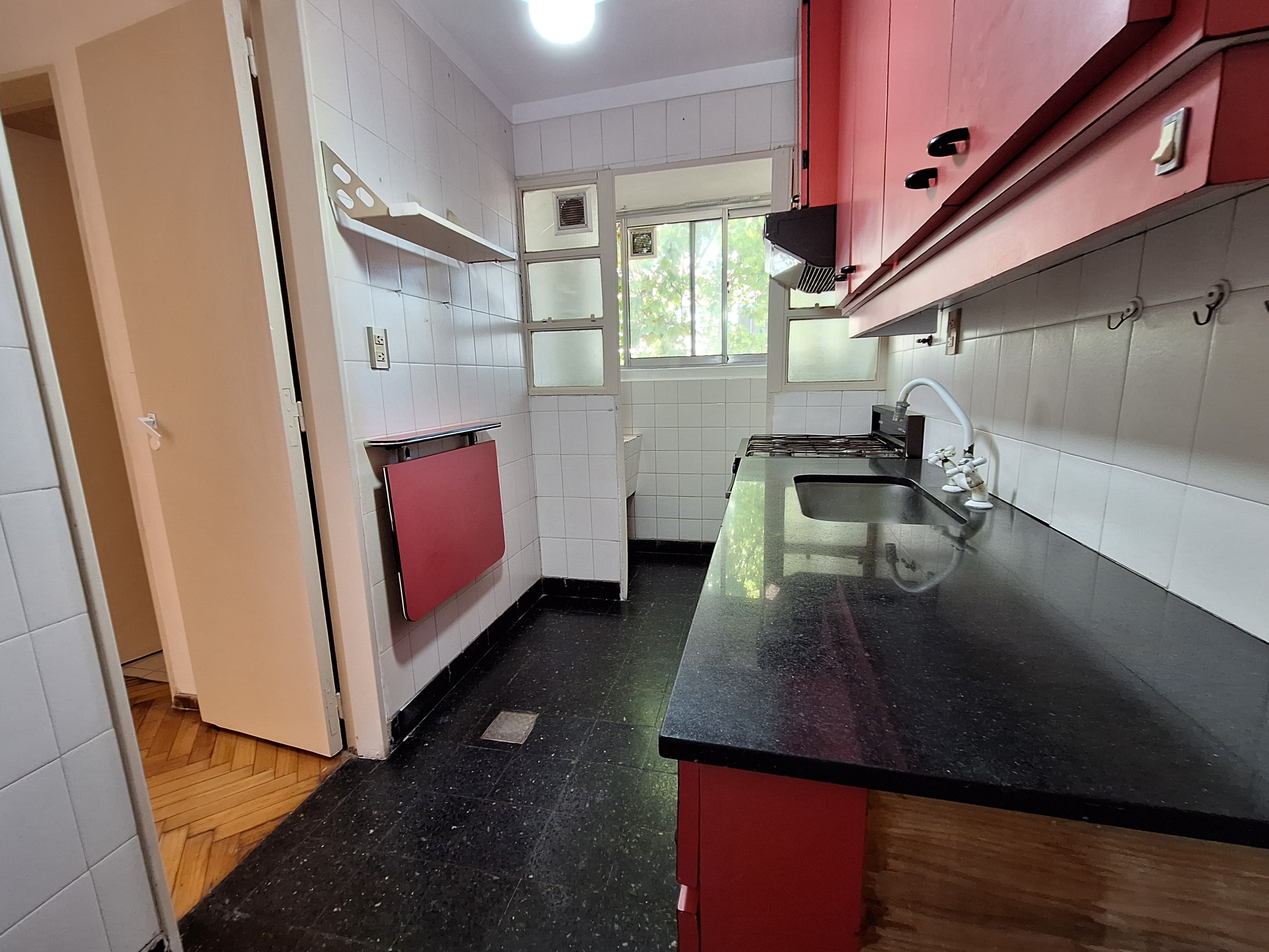 DEPARTAMENTO 2 AMB.AL FRENTE CON BALCON Y ESPACIO GUARDACOCHE COMODIDADES: LIVING COMEDOR 4.80 X 3.00 HALL DE DISTRIBUCIÓN 1.52 X 1.00 DORMITORIO 3.10 X 3.00 CON PLACARD AMPLIA COCINA INDEPENDIENTE 2.95 X 1.70 LAVADERO 1.75 X 0.80 BAÑO INSTALADO COMPLETO.2.00 X 1.45 BALCON DE 2.70 X 1.15 DETALLES: MUY BUEN DEPARTAMENTO DE 2 AMBIENTES CON ETRADA PRINCIPAL Y DE SERVICIO, TODO EXTERNO MUY LUMINOSO AGUA CALIENTE CENTRAL – AIRE ACONDICIONADO EN L/C PISOS DE L/C, HALL Y DORMITORIO EN PARQUET PLASTIFICADO. COCINA INDEPENDIENTE EQUIPADA CON MUEBLE BAJO MESADA, ALACENAS COLGANTES, MESADA DE GRANITO NEGRO, PURIFICADOR DE AIRE, COCINA MARCA LONGVIE. LAVADERO INDEPENDIENTE BAÑO COMPLETO ACTUALIZADO CON LUZ Y VENTILACIÓN NATURAL, PISOS Y REVESTIMIENTO EN CERAMICAS AMPLIO Y LUMINOSO DORMITORIO CON PLACARD. ESPACIO GUARDACOCHES CUBIERTO . SUPERFICIE CUBIERTA 36 M2 APROX – SUPERF DESCUBIERTA 2.70 M2 SUPERFICIE TOTAL C/ GUARDACOCHE 46 M2 APROX EDIFICIO DE 7 PISOS 4 DEPARTAMENTOS POR PISO EXPENSAS $ 190.000 APROX. NOTA: Las medidas, superficies y detalles consignadas en el presente folleto son aproximados y al solo efecto orientativo. Las medidas originales surgirán del título de propiedad respectivo.